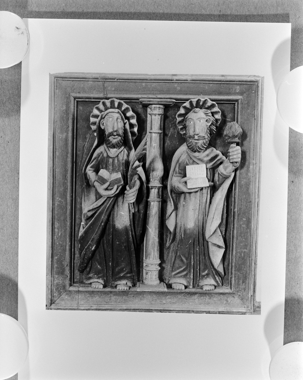 Hauts reliefs de l'ancien jubé, saint Pierre, saint Mathieu (?).Immatriculation