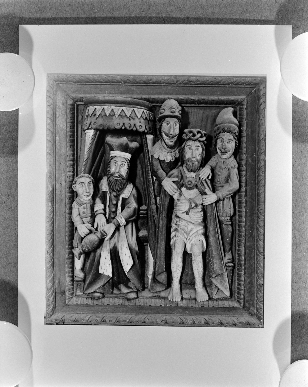 Hauts reliefs de l'ancien jubé, chemin de croix : Pilate se lave les mains.Immatriculation