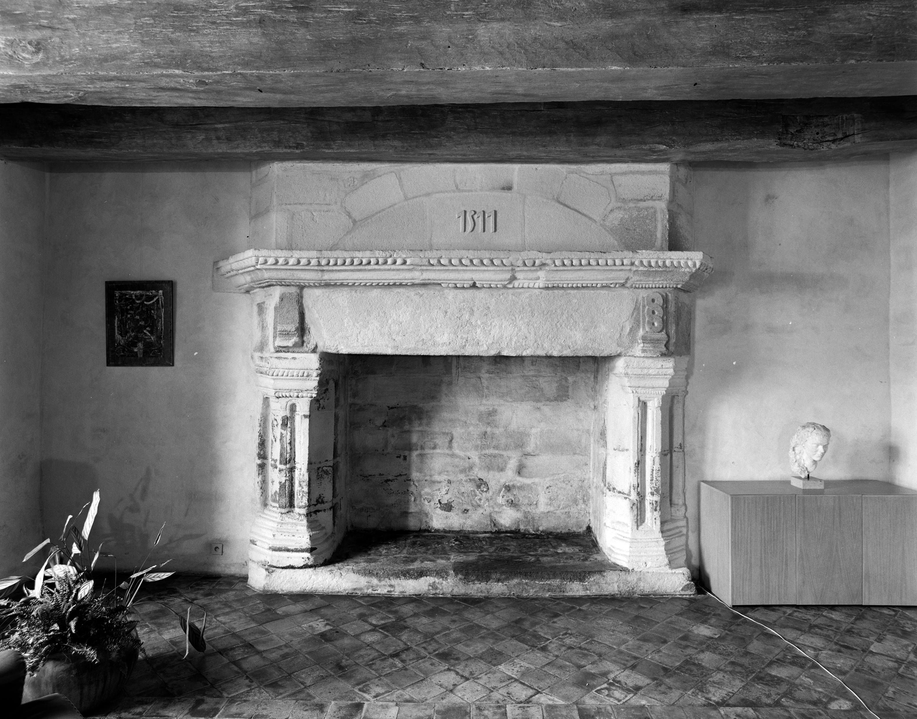 Rez-de-chaussée, salle sud, bureau du maire, vue générale de la cheminée.Immatriculation