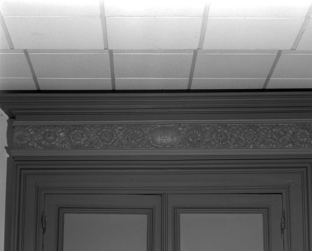 Rez-de-chaussée, pavillon nord, porte d'accès à la chapelle oratoire, frise sculptée.Immatriculation