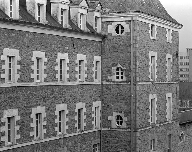 Elévation est. Etages du corps central et du pavillon nord.Immatriculation