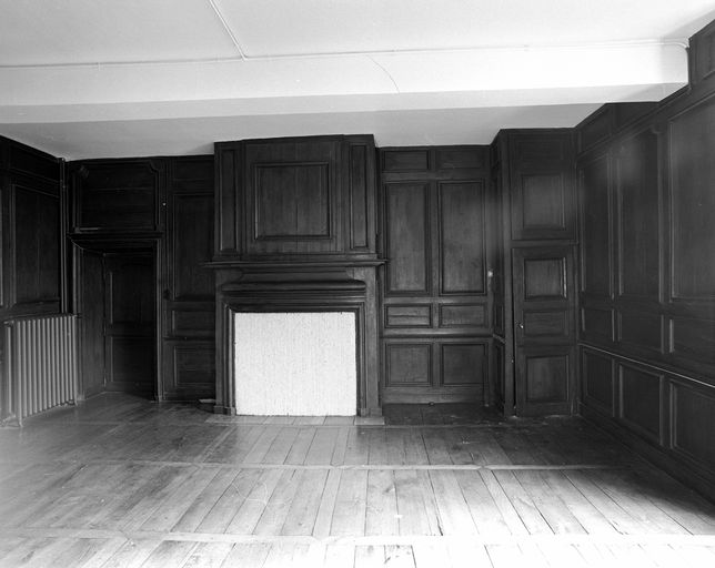 Pavillon sud, premier étage, pièce : lambris et cheminée.Immatriculation