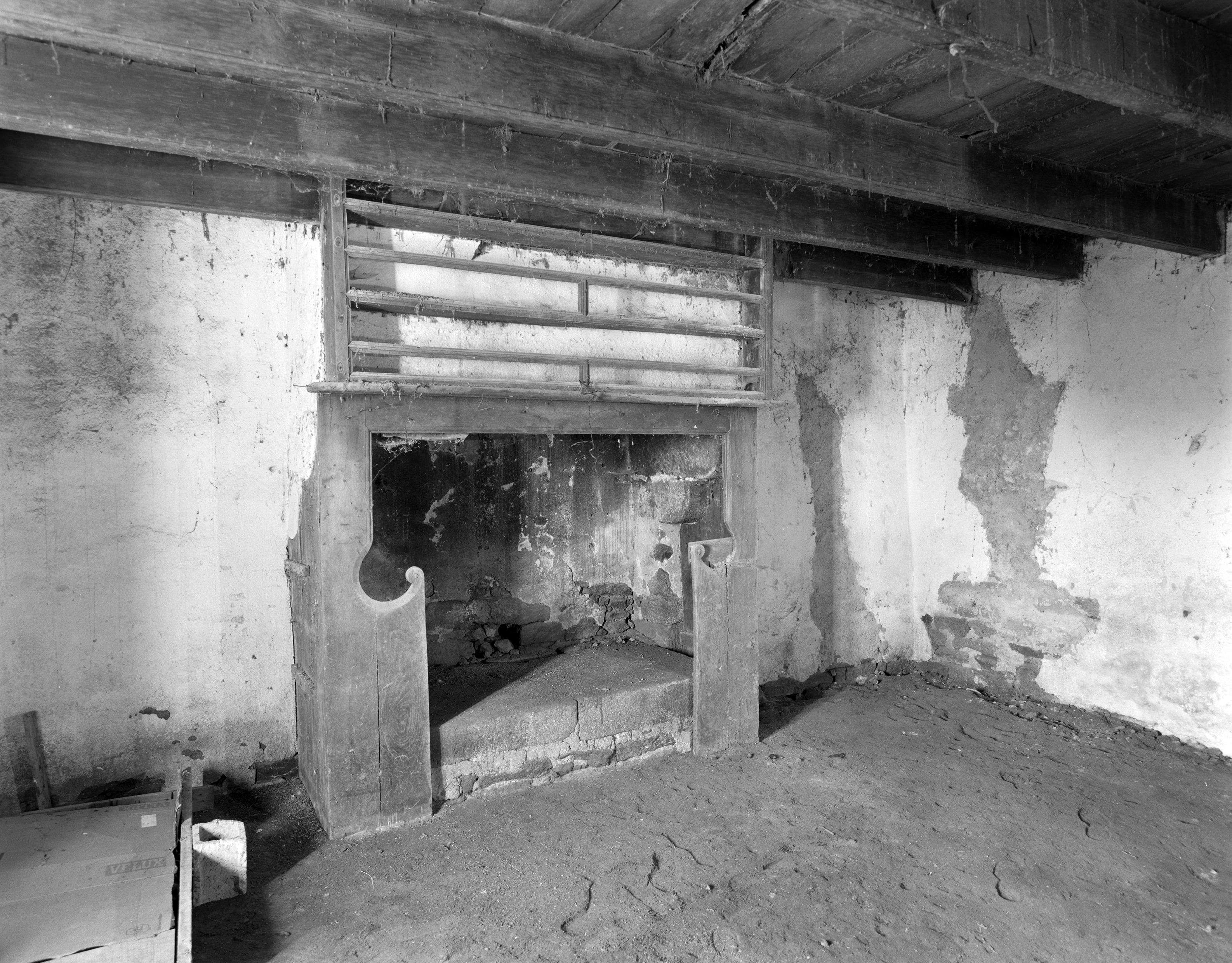 Rez-de-chaussée, mur sud, vue générale de la cheminée.Immatriculation