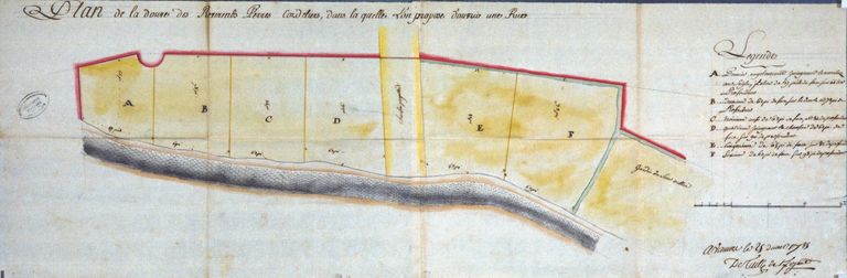 Fonds de l'Intendance. Plan de la douve des révérends pères cordeliers...par Detaille de Keroyant, 1785. AD Ille-et-Vilaine C704/20.Immatriculation