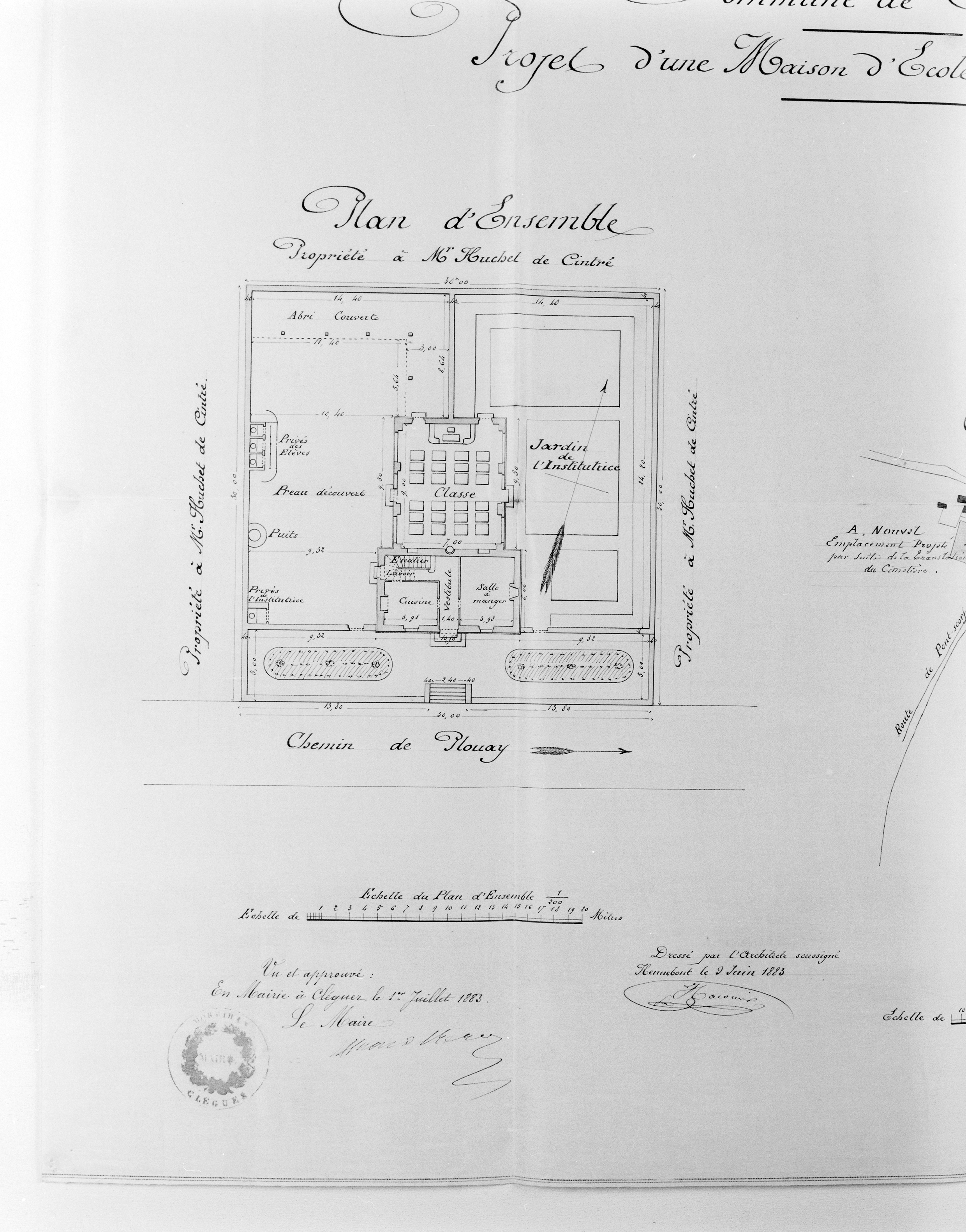 Plan d'ensemble d'une école de filles établi par l'architecte Halouis Père.Immatriculation