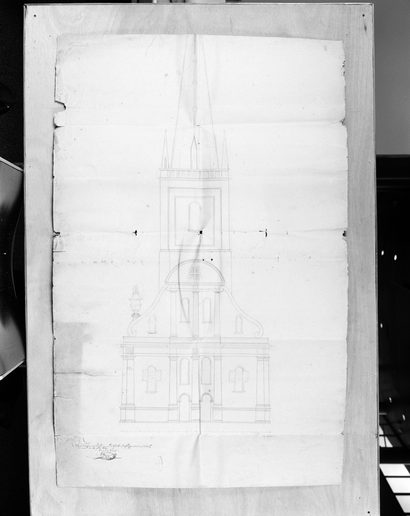 GUIDEL, projet de reconstruction de l'église paroissiale de Guidel. Elévation de la tour d'église, 1836.Immatriculation