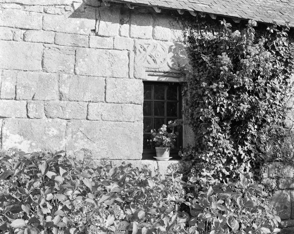 Elévation sud, détail du linteau de la fenêtre.Immatriculation