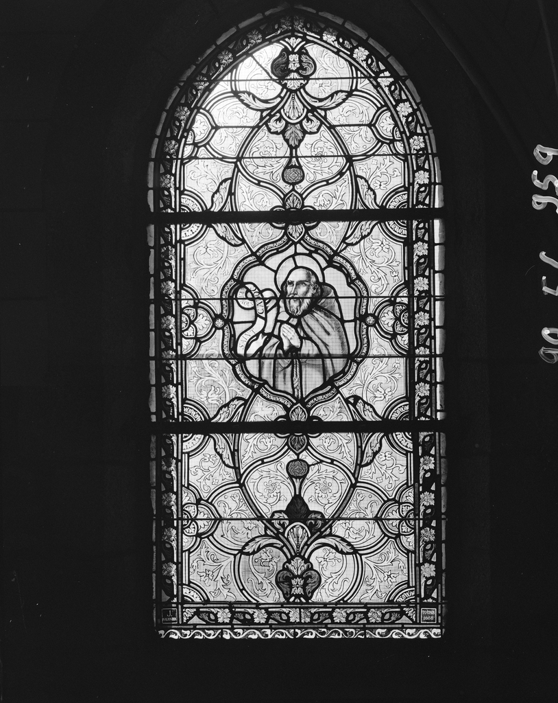 Verrière de la nef : saint Cadoc.Immatriculation