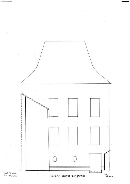 Corps postérieur, élévation ouest sur jardin, relevé schématique.Immatriculation