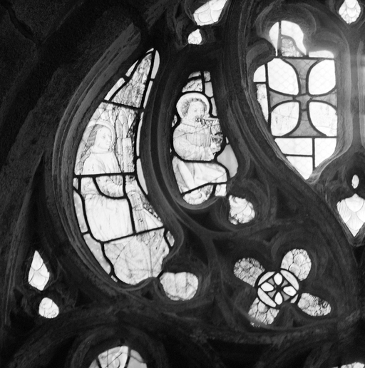 Plounévez-Moëdec, Keramanac'h : chapelle de Keramanac'h, baie 2, tympan, détail d'un ange (état en 1999)Immatriculation