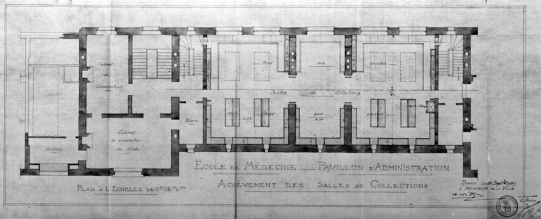 École de Médecine. Pavillon d'administration, achèvement des salles de collections : plan. Dessin, par Emmanuel Le Ray, 1919 (A.C.Rennes)Immatriculation