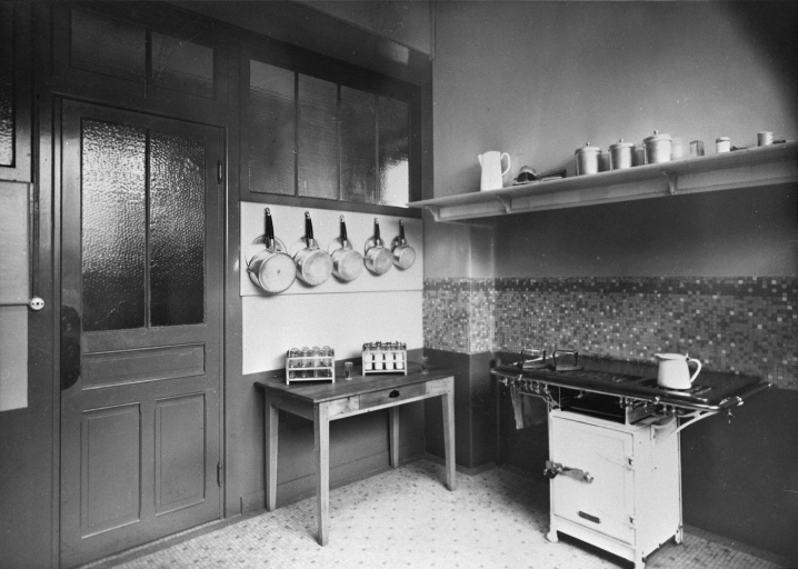 La crèche Alain Bouchart, vue de la cuisine. Photographie par Auguste Lecouturier, 1er quart 20e siècle. (A.D. Ille-et-Vilaine)Immatriculation