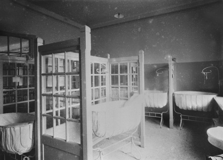 La crèche Alain Bouchart, vue du dortoir. Photographie par Auguste Lecouturier, 1er quart 20e siècle. (A.D. Ille-et-Vilaine)Immatriculation