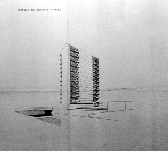 Immeuble, quai de Richemont. Vue axonométrique, plan d'exécution (A. C. Rennes)Immatriculation