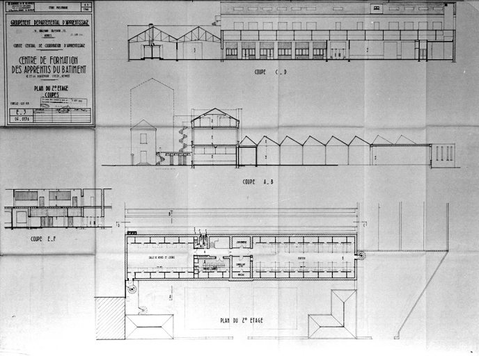 Centre d'apprentissage : plan du deuxième étage et coupe étage (A. C. Rennes)Immatriculation