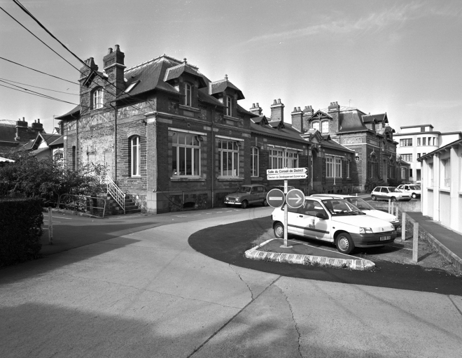 Façade arrière du bâtiment, ailes et pavillon central.Immatriculation