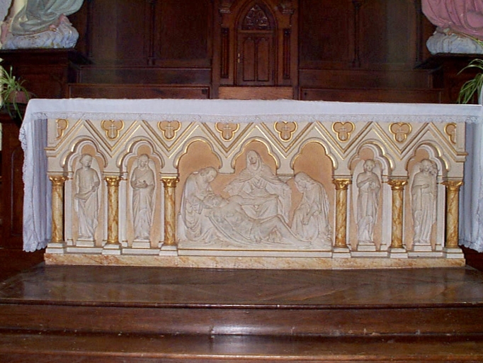 Ensemble du maître-autel (autel : Piéta, 4 anges portant les instruments de la Passion) (Campel fusionnée en Val d'Anast en 2017),