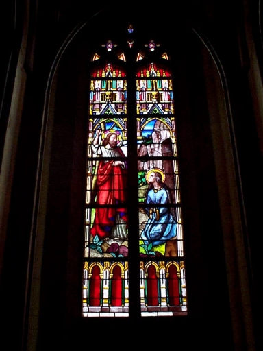Verrière de la maîtresse-vitre (baie 0) (verrière figurée) : Noli me tangere (Campel fusionnée en Val d'Anast en 2017),