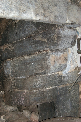 Ancien logis, cheminée du rez-de-chaussée, corbelets chanfreinées : vue partielleImmatriculation