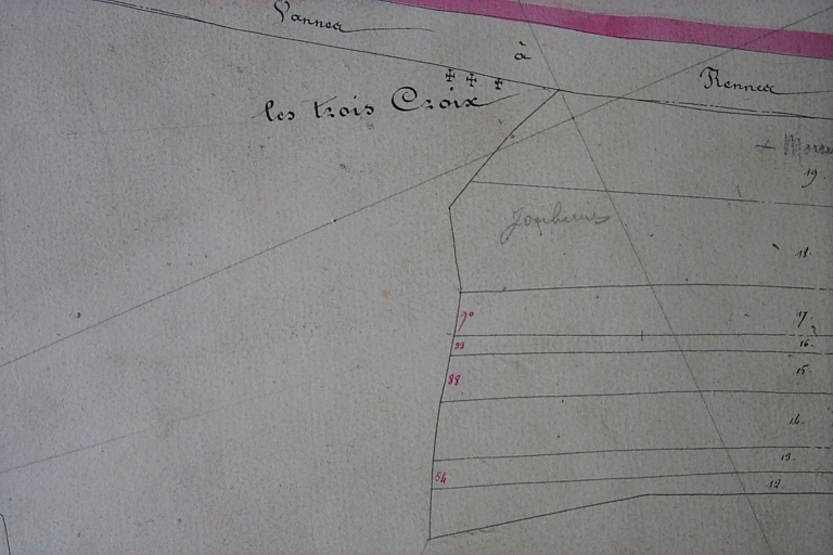 Trois Croix(les), évocation du Golgotha, alors sur le territoire de Mernel, figurées sur le cadastre de 1836Immatriculation