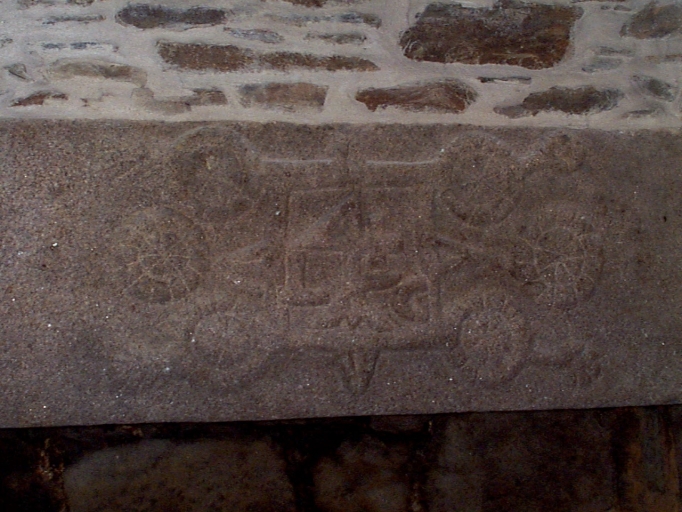 Détail : inscriptions sur le linteau de la cheminée de la maison située à l'ouest de l'ensembleImmatriculation