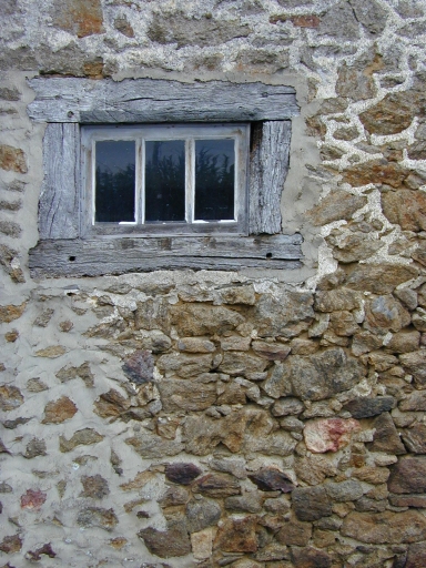 Détail : maçonnerie en moellons de granite et jour en boisImmatriculation