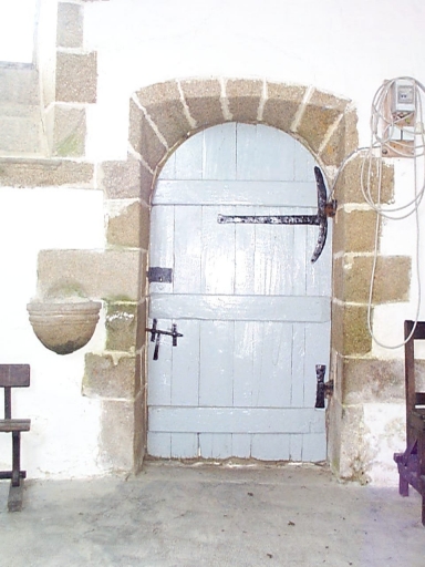 Vue intérieure : porte de la chapelle donnant au sud dans le jardin du manoirImmatriculation