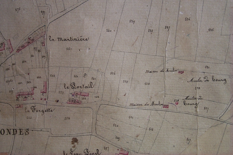Plan de situation sur le cadastre de 1826 : logis, au lieu La Forgette, parcelle 567Immatriculation