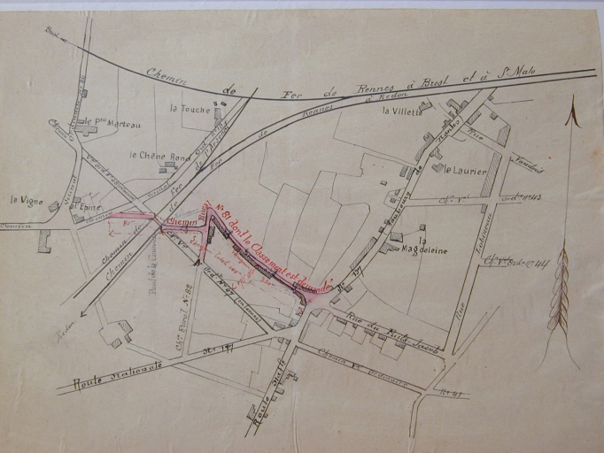 Chemin rural du Chêne Rond à la route nationale 137 et à Manciau, demande de classement, plan de l'agent voyer cantonal, 1898 (A. C. Rennes)Immatriculation