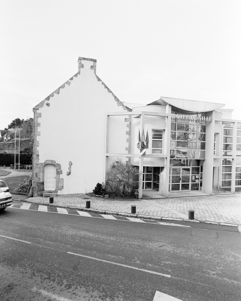 Mairie, vue générale est, pignon et porte.Immatriculation