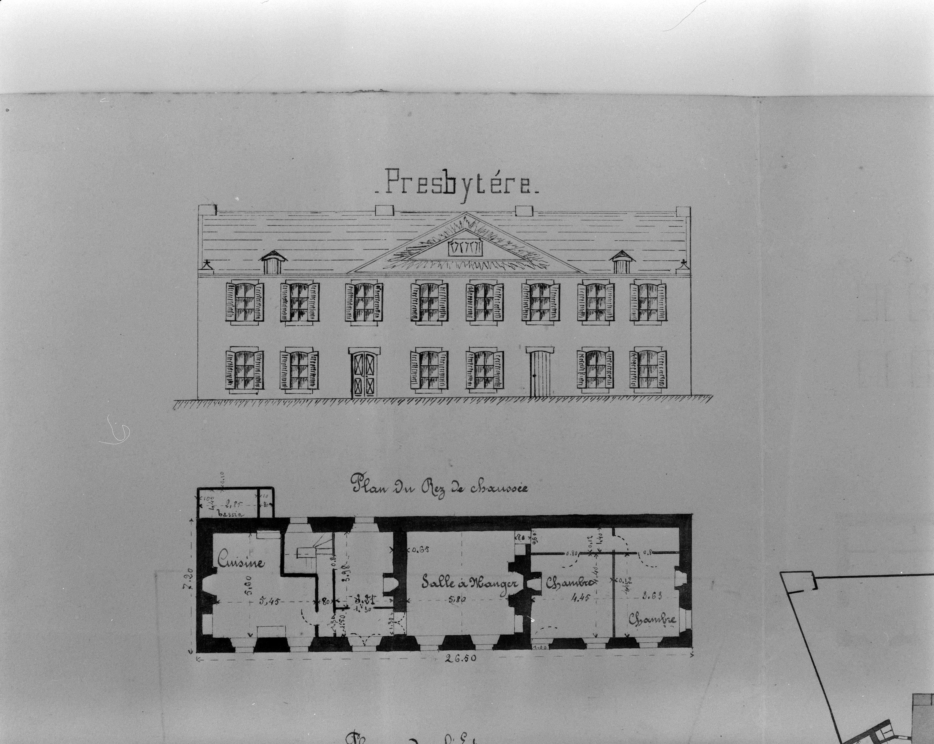 Aliénation du presbytère et de ses dépendances. Elévation sud et plan au sol du rez-de-chaussée. Lorient, 23 mars 1908.Immatriculation