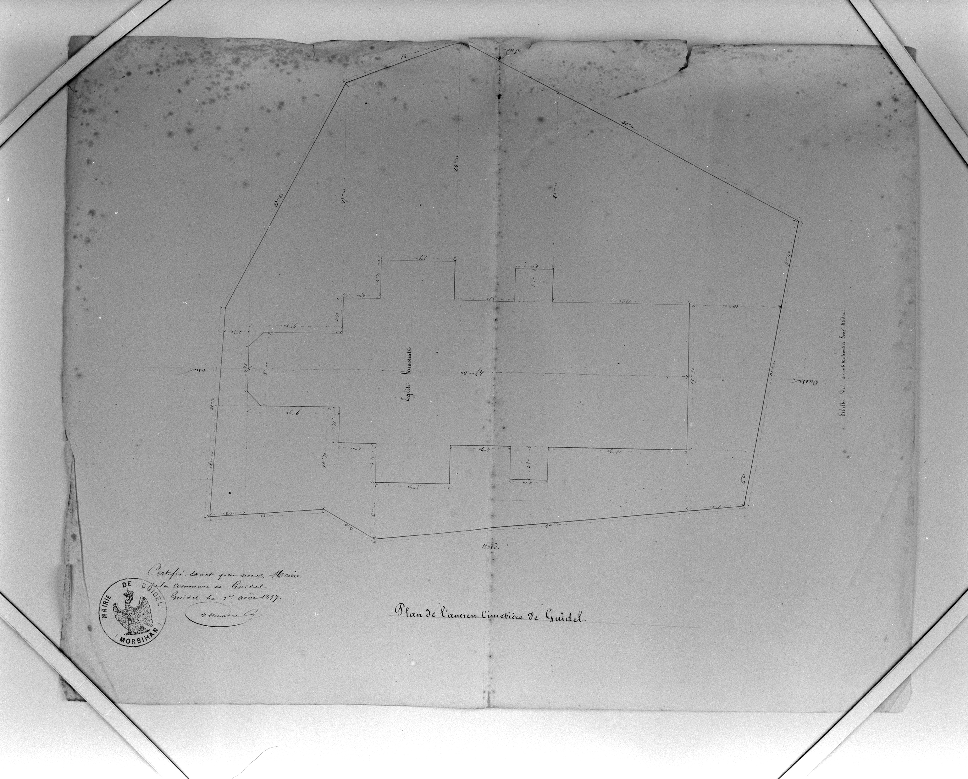 Plan de l'ancien cimetière de Guidel, avec plan de l'église paroissiale, 1857.Immatriculation