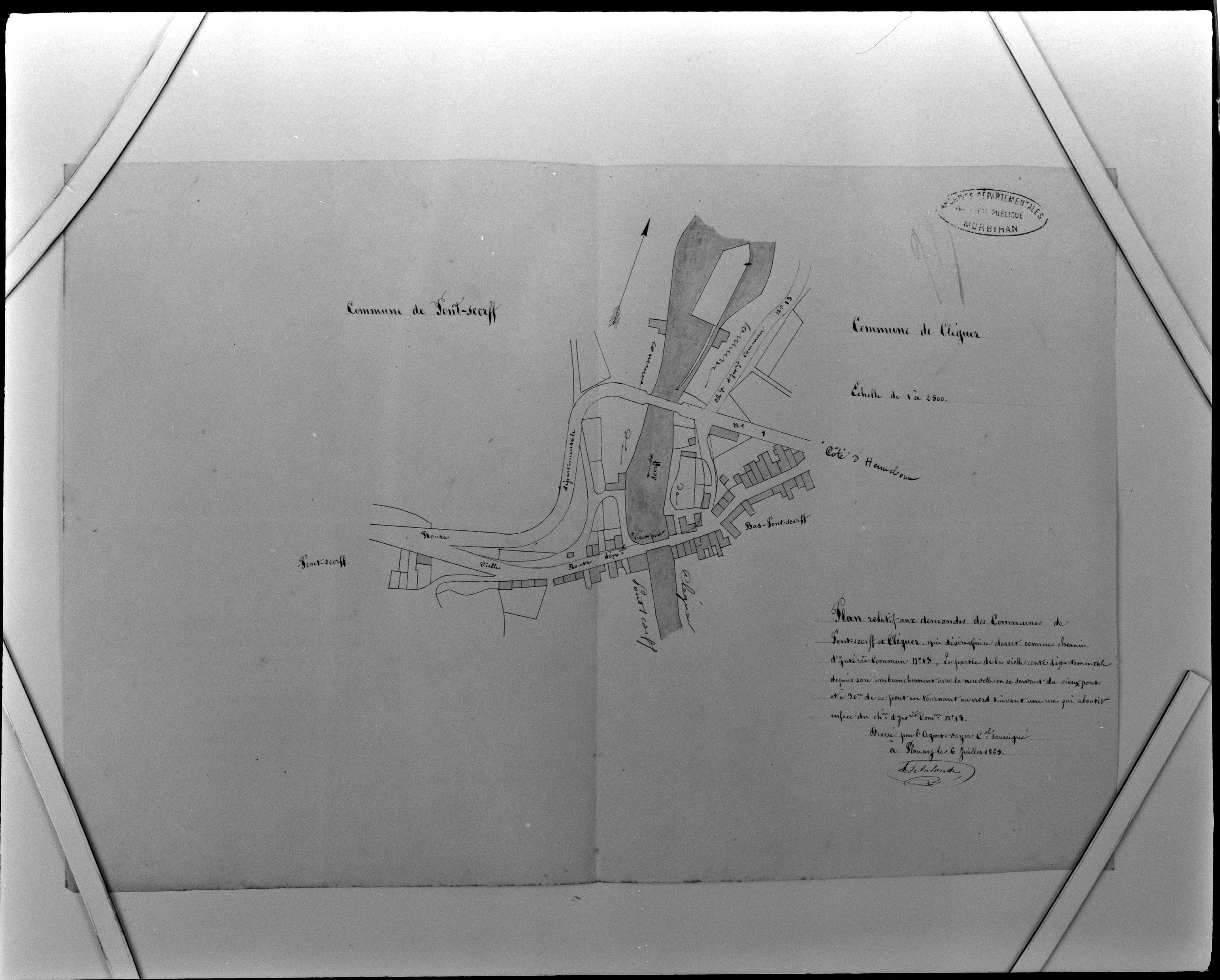 Plan relatif aux demandes des communes de Pont-Scorff et Cléguer, de classer les chemins d'intérêt commun, la partie de la vieille route départementale depuis son embranchement avec la nouvelle, 1865.Immatriculation