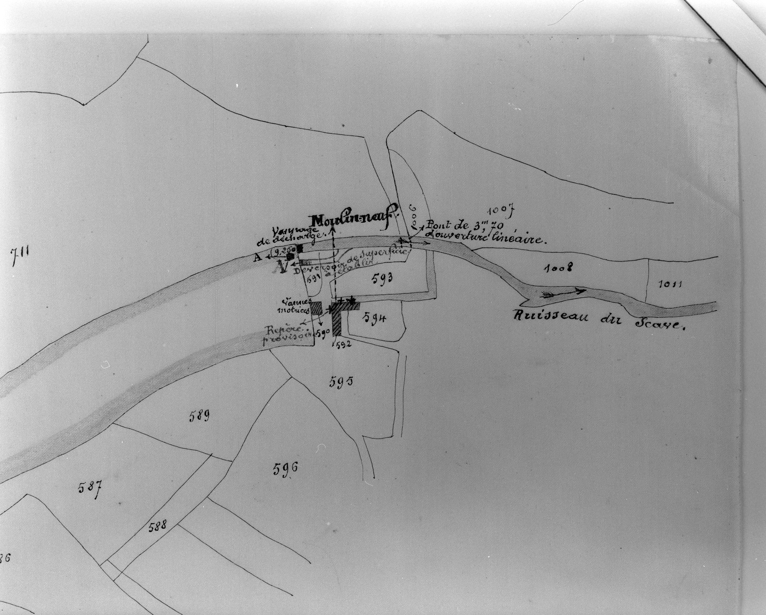 Plan général : le Moulin Neuf sur le ruisseau du Scave, affluent du Scorff détail.Immatriculation