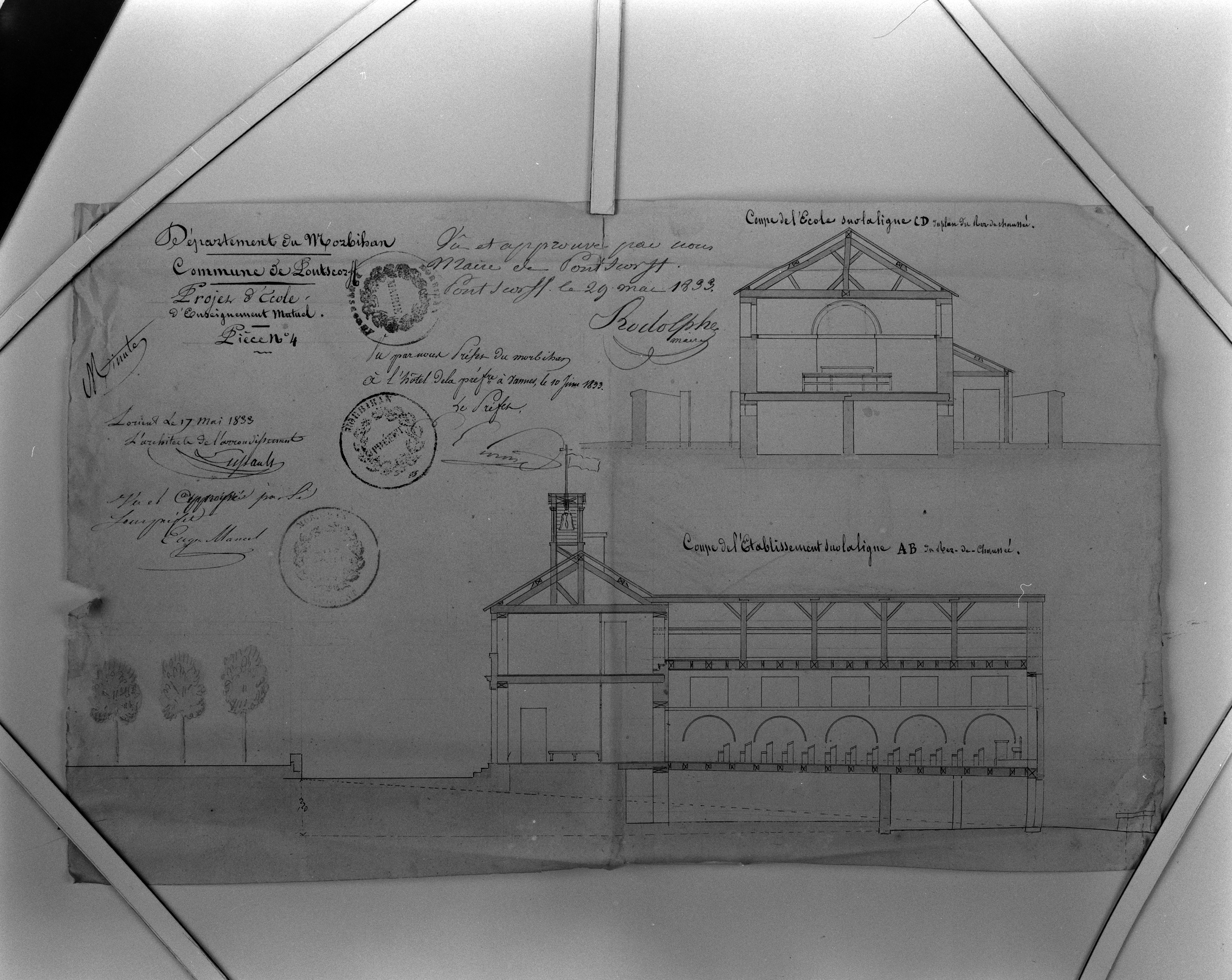 Construction d'une école d'enseignement mutuel et d'une maison commune, coupe de l'établissement, 1833.Immatriculation