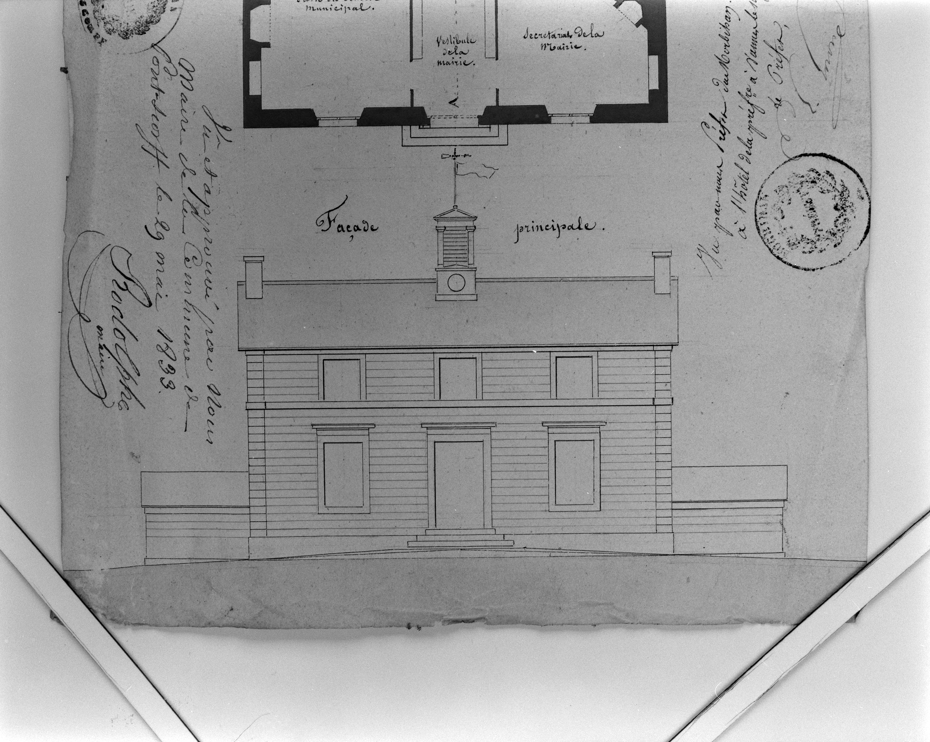 Construction d'une école et d'une maison : façade principale, 1833.Immatriculation