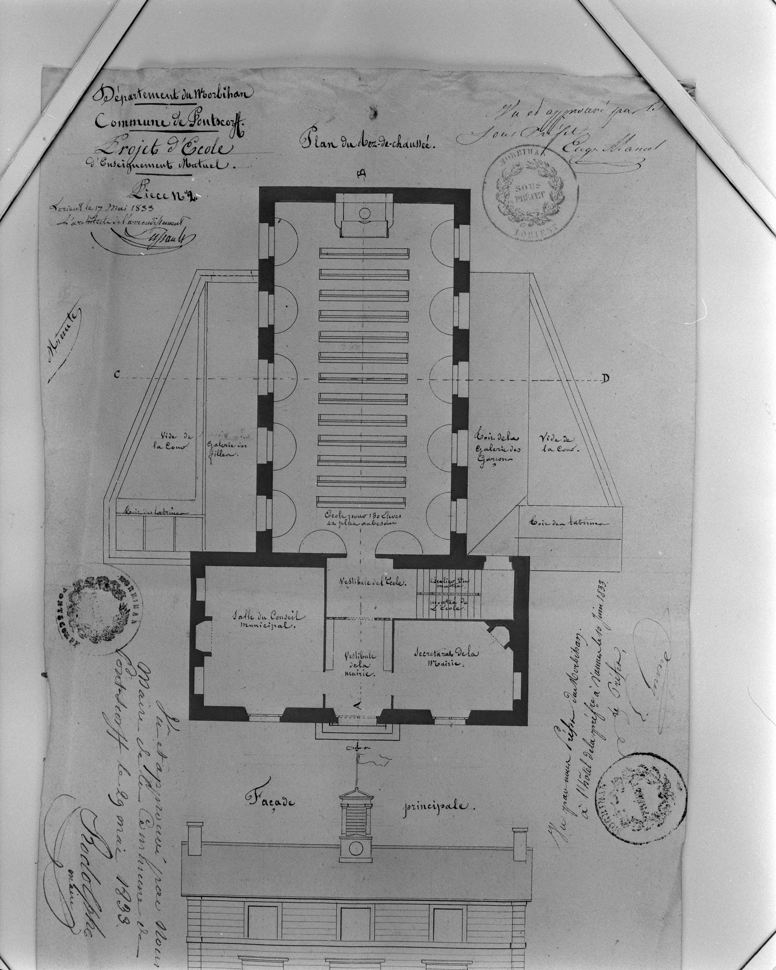 Construction d'une école et d'une maison : plan du rez-de-chaussée, 1833.Immatriculation