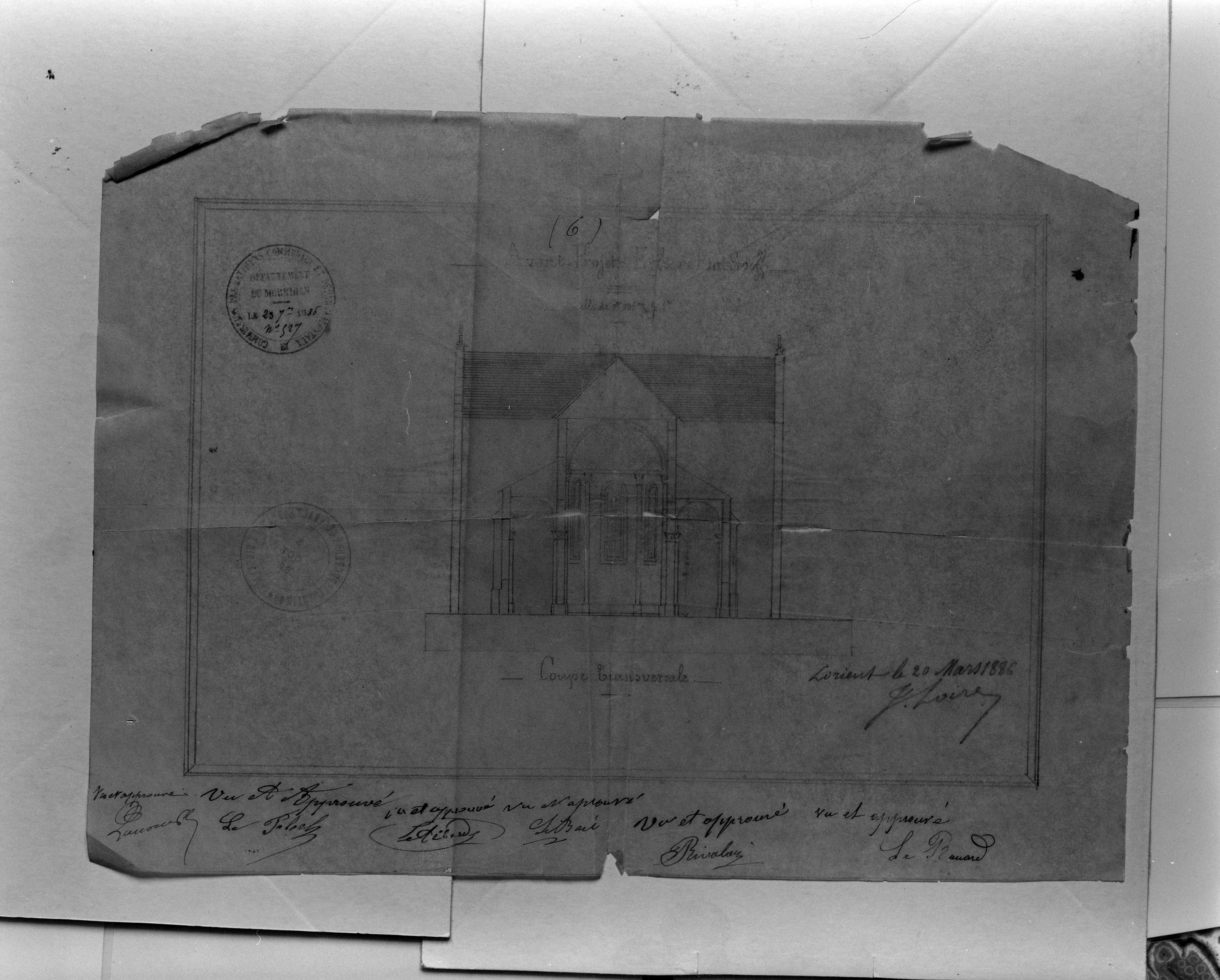 Avant-projet d'une église paroissiale à Pont-Scorff, coupe transversale, 1886.Immatriculation