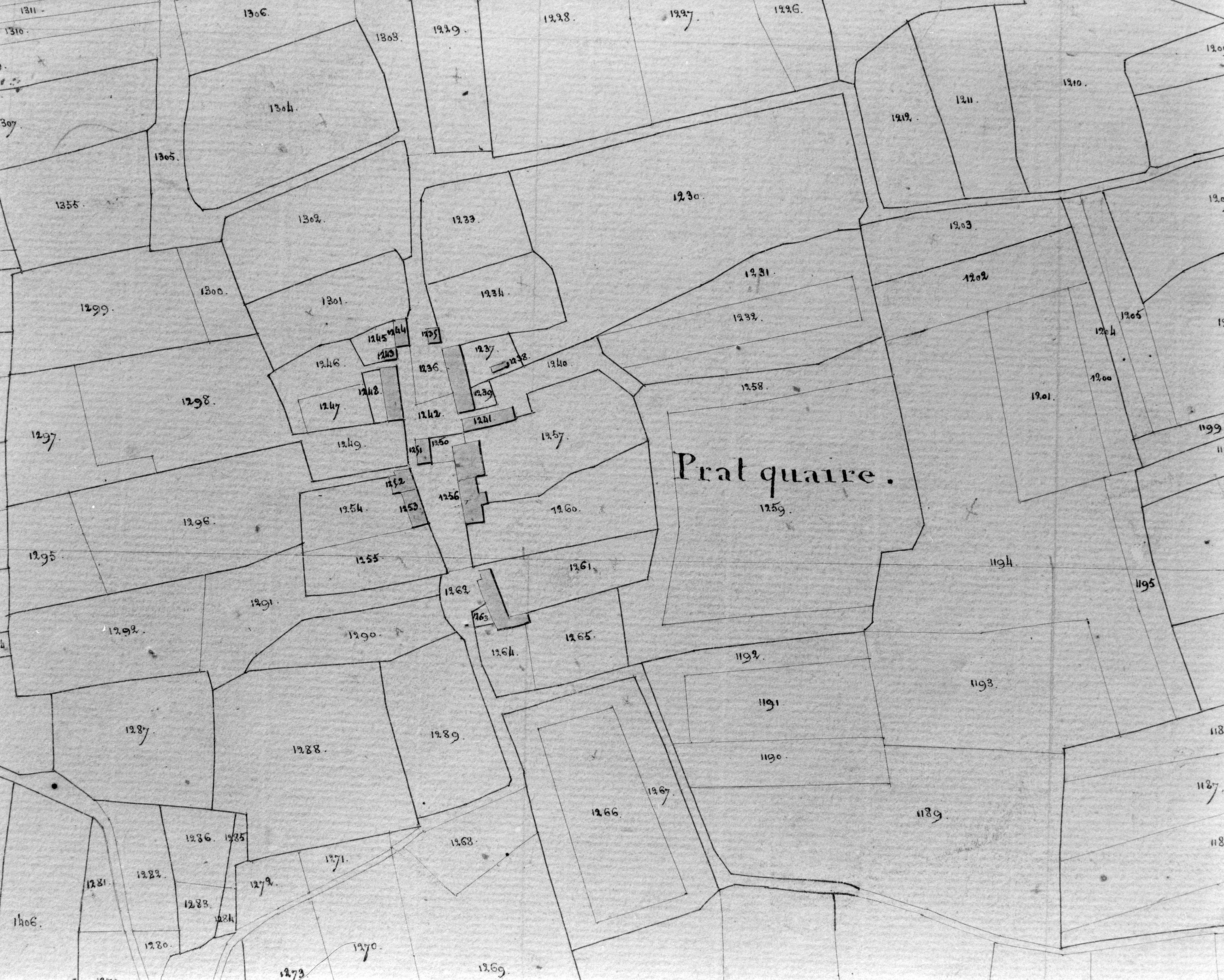 Prat-Caër, cadastre de 1818, extrait cadastral de l'écart, section H.Immatriculation