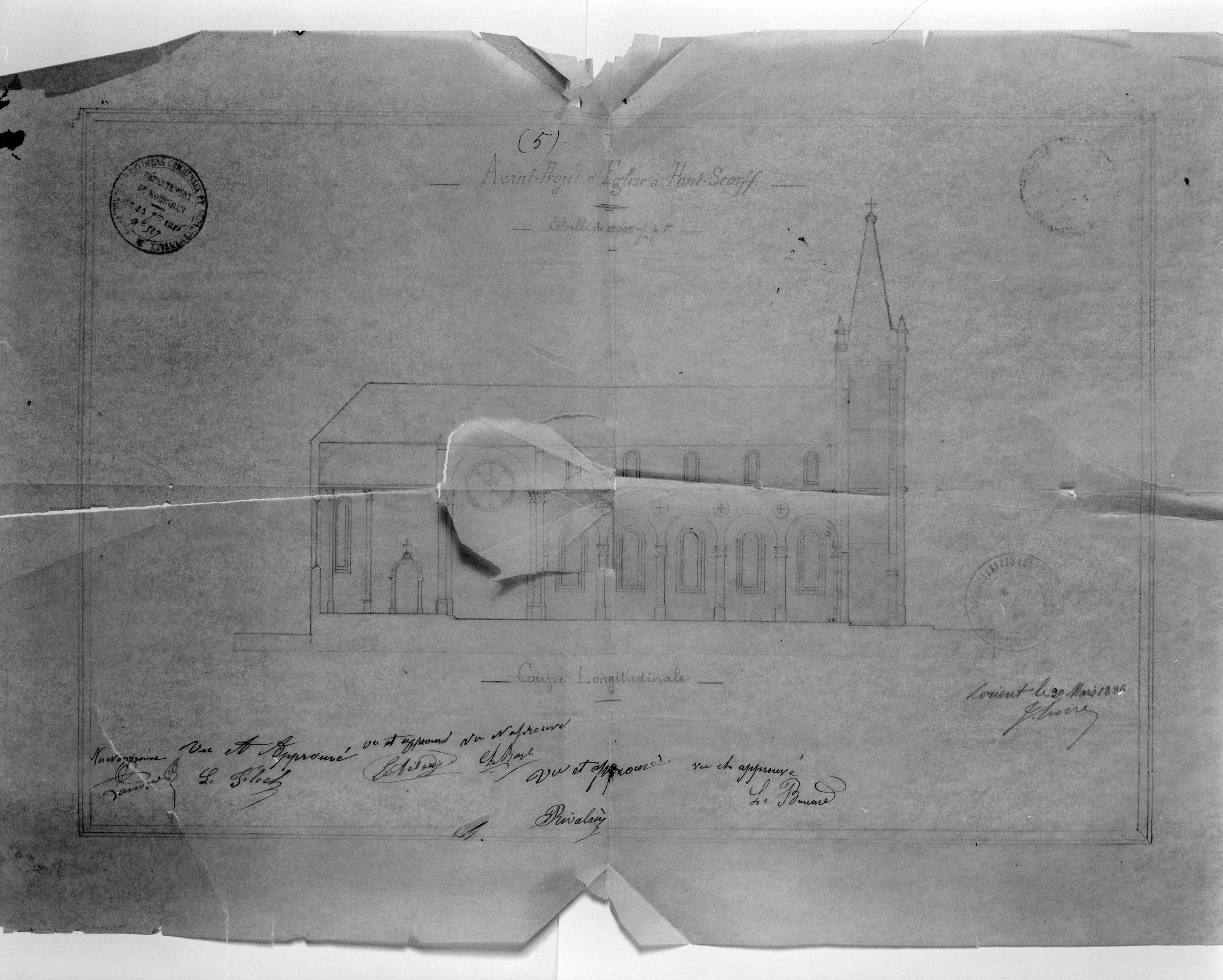 Avant-projet d'église à Pont-Scorff, coupe longitudinale, 1886.Immatriculation