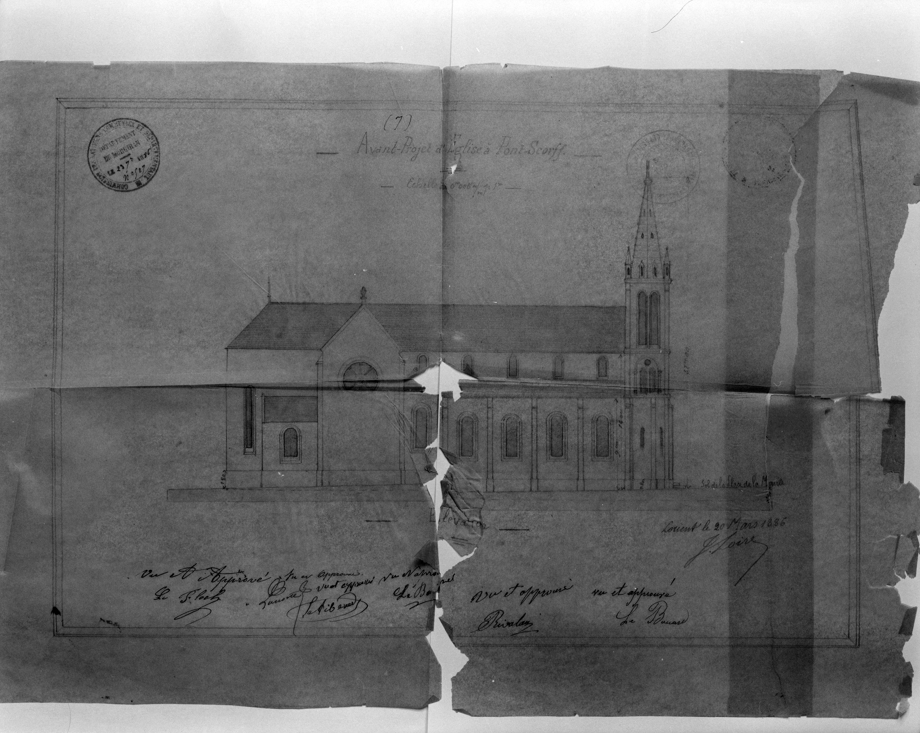 Avant-projet d'église à Pont-Scorff, élévation, 1886.Immatriculation