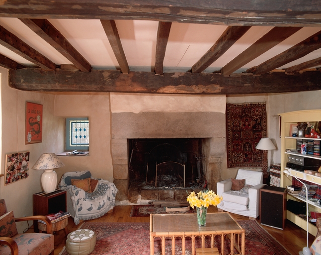 Rez-de-chaussée, salle, vue vers l'ouest : cheminée et jour. (2000)Immatriculation