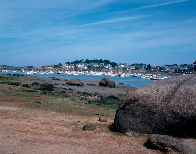 Vue d'ensemble du port de Ploumanac'h depuis la chaussée du moulin à merImmatriculation