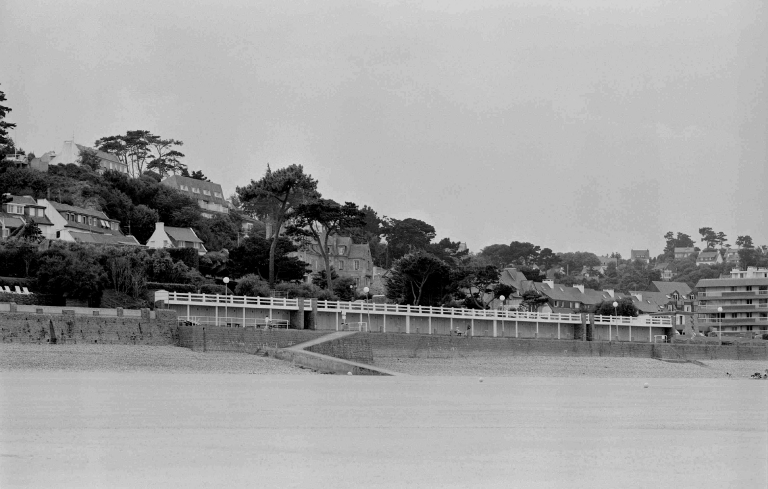 Perros-Guirec : cabines de bains de la plage de Trestraou, construites à partir de 1965 par les architectes Henry Coulombeau et Jean Gélis.Immatriculation
