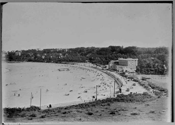 La plage de Trestraou, vue depuis la pointe de Beg-ar-Storloc'h, tirage d'après négatif sur verre par Hamon-Trémeur, 2ème quart du 20ème siècle (AD 35)Immatriculation