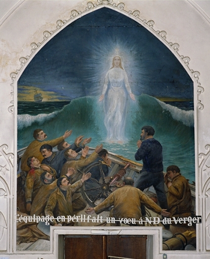 Tableau ex-voto : la Vierge apparaît à des marins en difficulté,