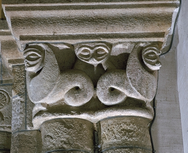 Vue des chapiteaux géminés de l'angle supérieur nord-ouestImmatriculation