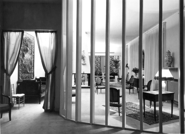 Vue du salon depuis le bureau, vers 1950 (A. P.)Immatriculation