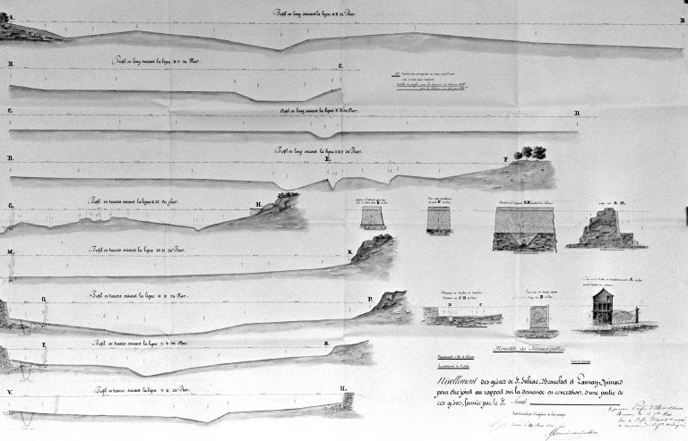 Nivellement des grèves de Saint-Suliac, Beauchet et Launay-Quinard, et coupe du moulin de Beauchet (21 mars 1844)Immatriculation