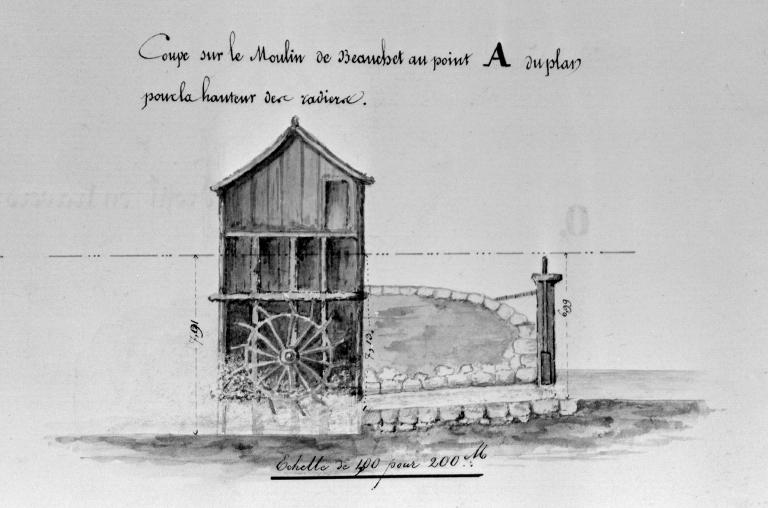 Détail de la coupe du moulin de Beauchet (21 mars 1844)Immatriculation